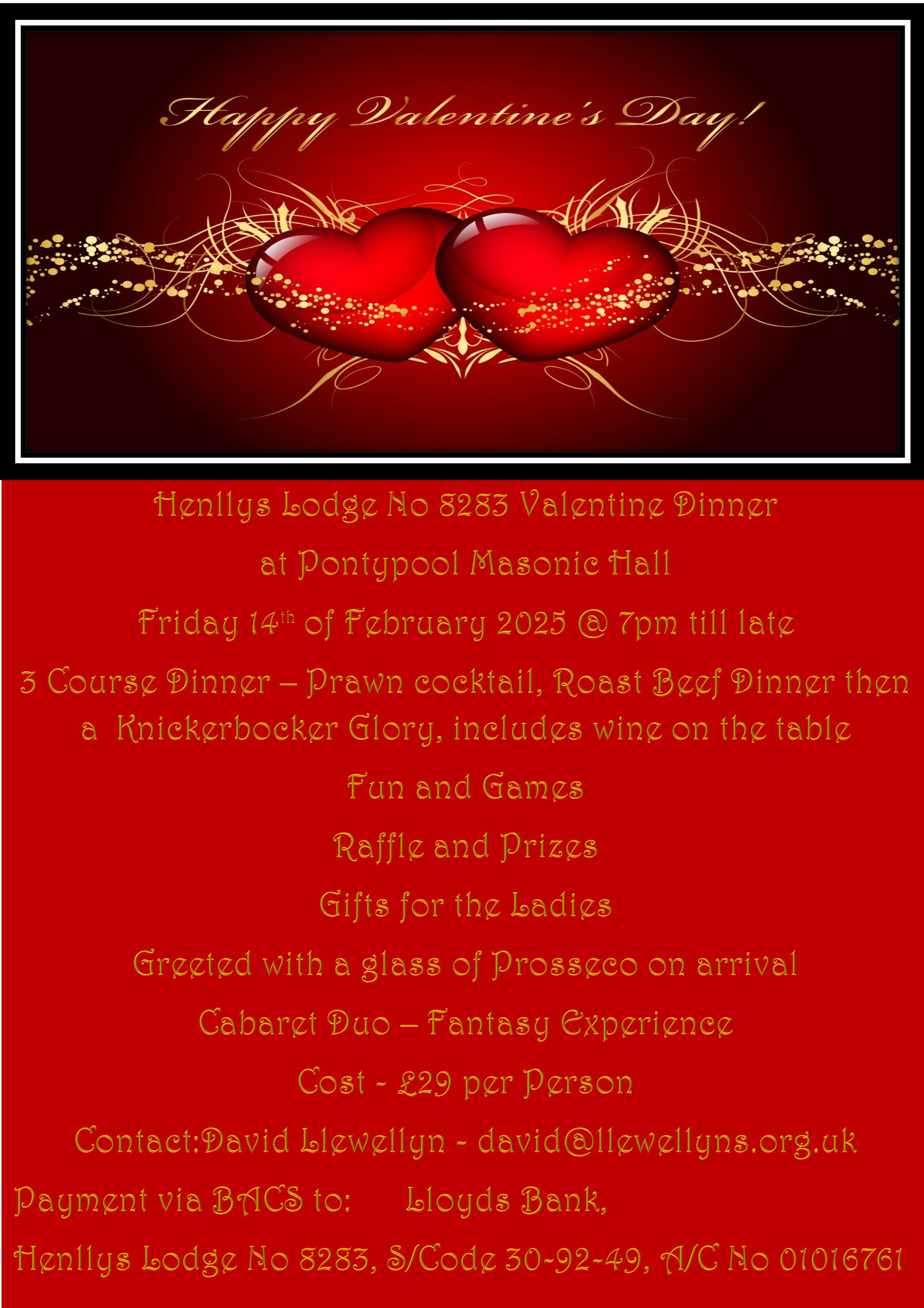 Valentines Day celebrations organised and hosted by Henllys Lodge at Pontypool Masonic Centre