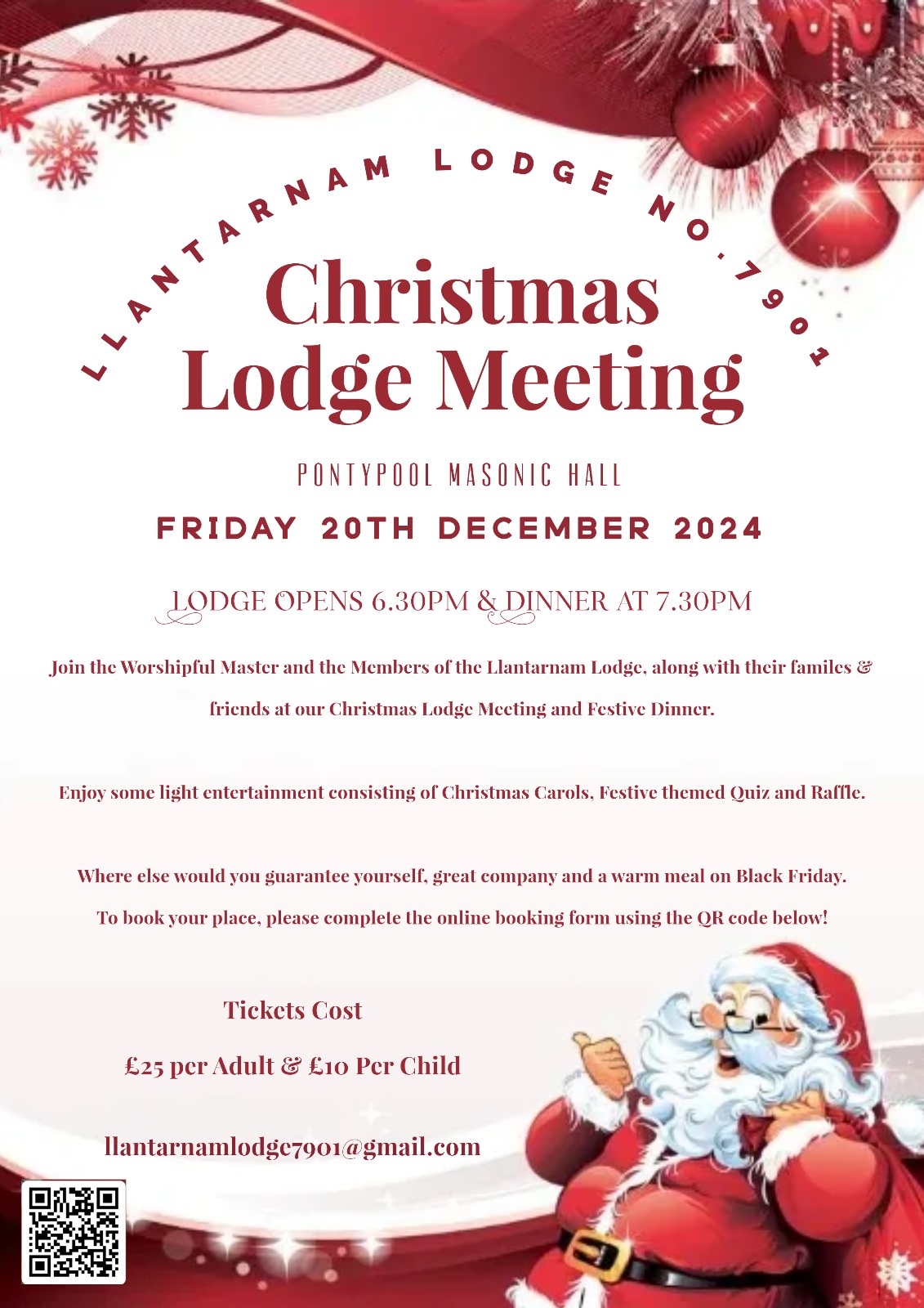 Friday evening saw the Brethren of Llantarnam Lodge together with their family and friends enjoy a pre-Christmas festive together.