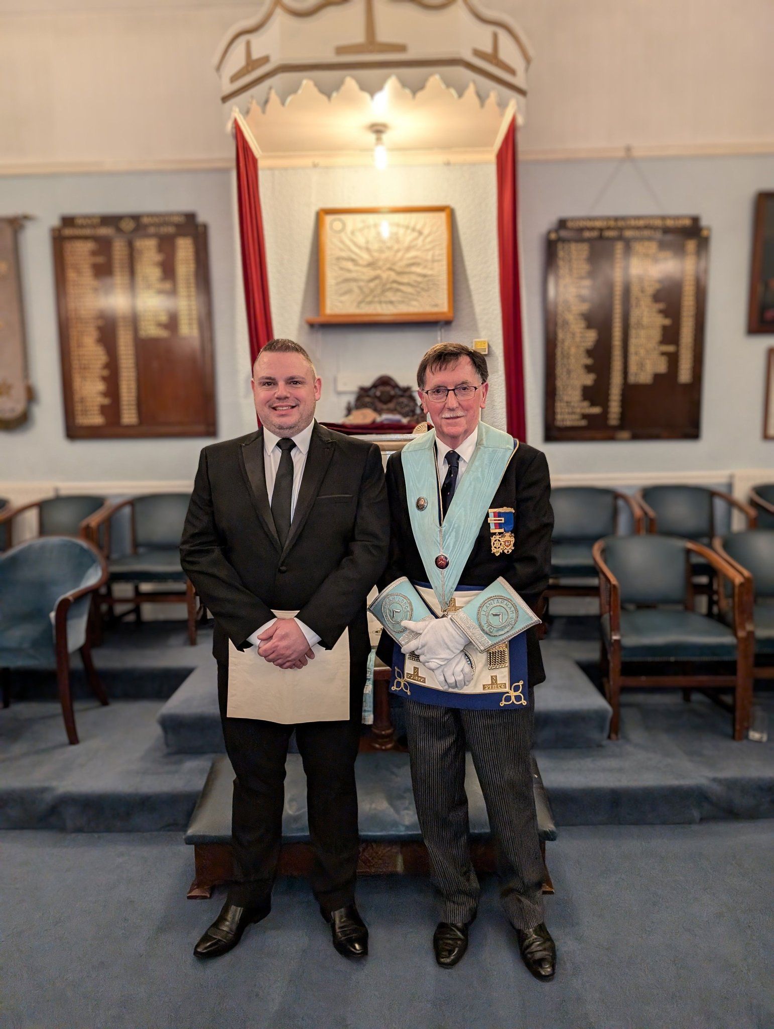 Our ceremony last night saw Bro. Richard Gingell passed to the second degree. Congratulations brother on your next step in Freemasonry. Excellent ceremony lead from the front by our W.M who also celebrated 40 years in masonry what an achievement. A goodly number of visitors (picture of all the visiting WM’s/elect) and even visitors all the way from Essex. Well done all involved.