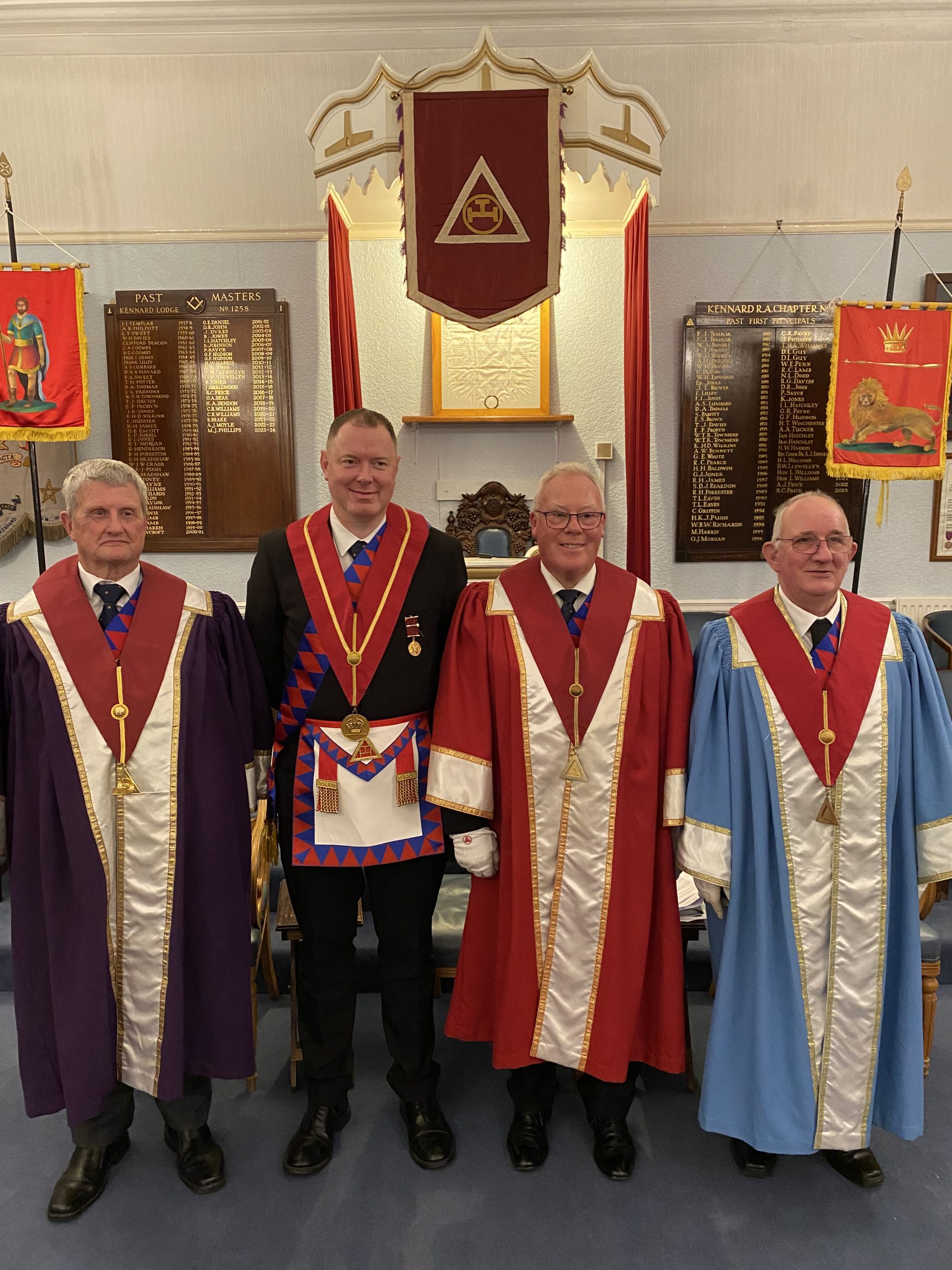 This evening Brothers Heath and Michael Baker were exalted into Llantarnam Royal Arch Chapter. The Brothers were initiated into Freemasonry together and now continue their Masonic journey as Brothers, Brethren and now companions of Llantarnam Royal Arch Chapter. The ceremony was followed by a festive season themed festive board with all the Christmas decorations and trimmings courtesy of Companion Stuart Howells.