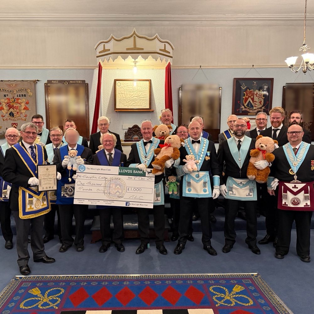 Warren the TLC Bear paid a visit to Trevethin Lodge last night! Trevethin Lodge 6008 has donated £1000 to the Mon TLC Appeal and in doing so, became Platinum Patrons. “On behalf of the team at the Mon TLC Appeal we would like to sincerely thank the Trevethin Lodge members for supporting us with this very generous donation. We rely on support like this to be able to continue giving these wonderful little bears to children who love and need them. Keep an eye out for Warren as he visits other lodges in the Province as they too become Patrons of The Mon TLC Appeal. 🩵🧸🩵🧸🩵🧸